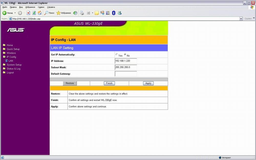 Люди, там же все ясно, Асус не раздает айпишник. Надо влючить DHCP сервер.