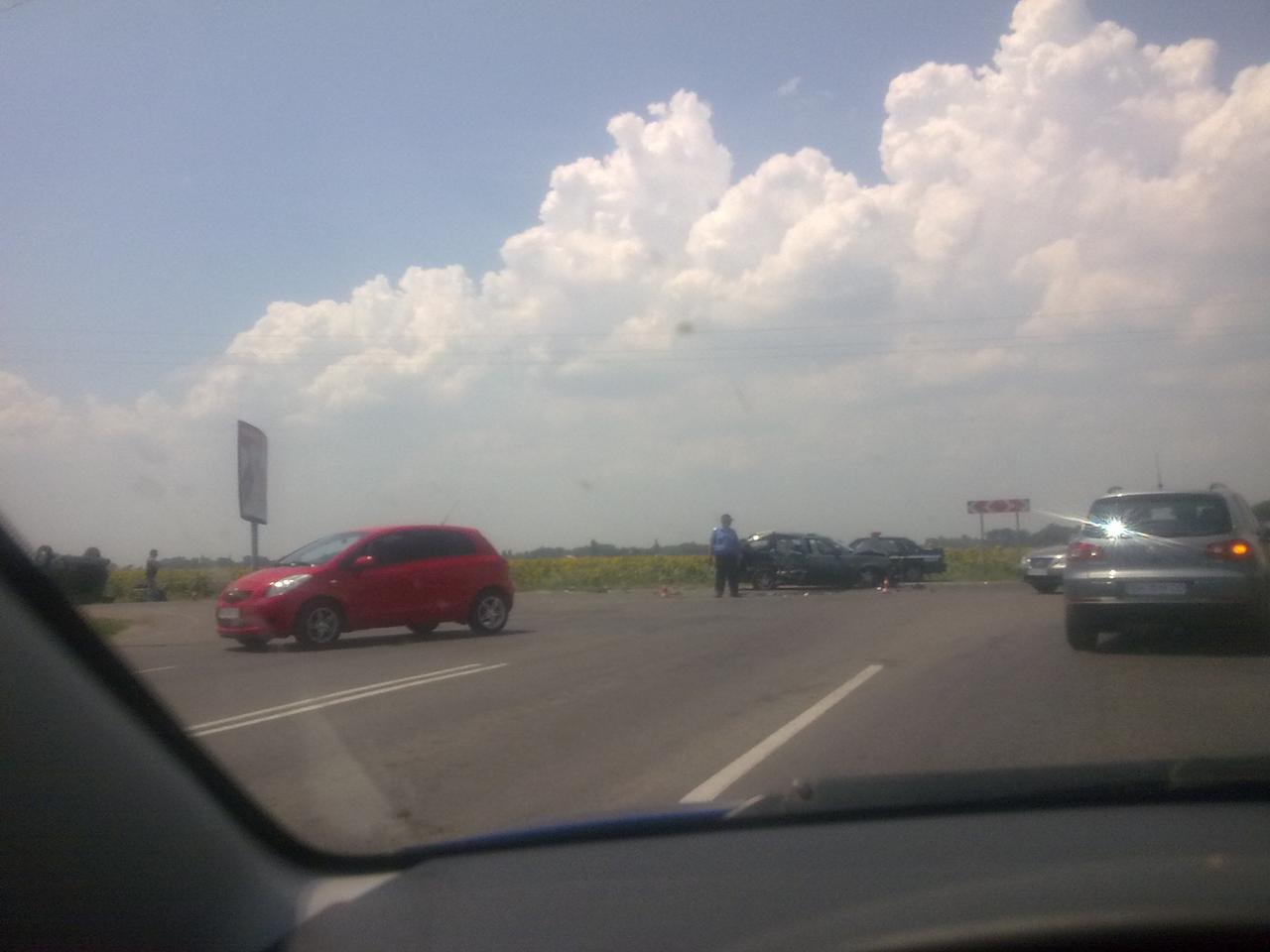 Поворачивали на Инфокс, задолго до разрыва включили поворот, чтобы не создавать неудобств остальным. Машины сзади перестроились в правый ряд. Стоим, никого не трогаем, и тут тАкая подача. Мы пролетели по воздуху около 30м! по встречной. Слава Богу все встречные машины успели вывернуть, а МАЗ (Одессаоблэнерго), он даже не тормозил, скорость была больше 60, он отвлекся на разговор с едущим рядом трактором их же контры.