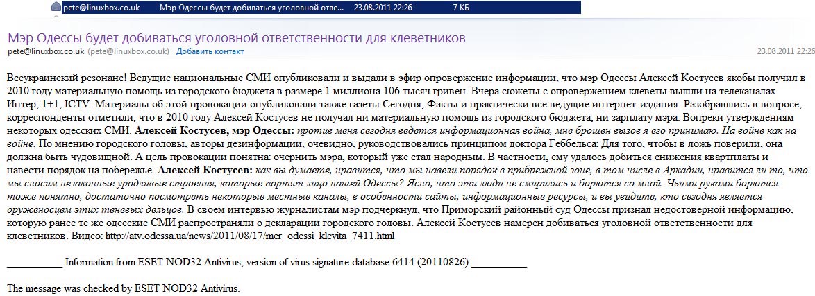 2. Рассылка такого х-ра доказывает, что он таки эти деньги спер, а теперь, как он это любит делать - замыливает глаза людям. К слову уверенно могу сказать, что за свое "правление", а точней сказать свое уничтожение города с горожанами он ни одному одесситу не помог ни на йоту.
