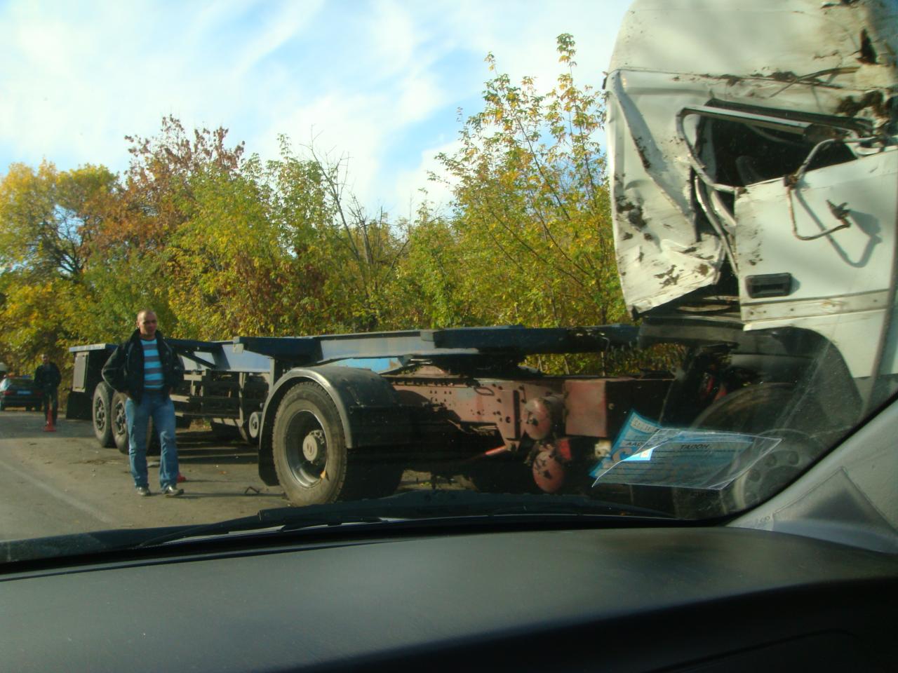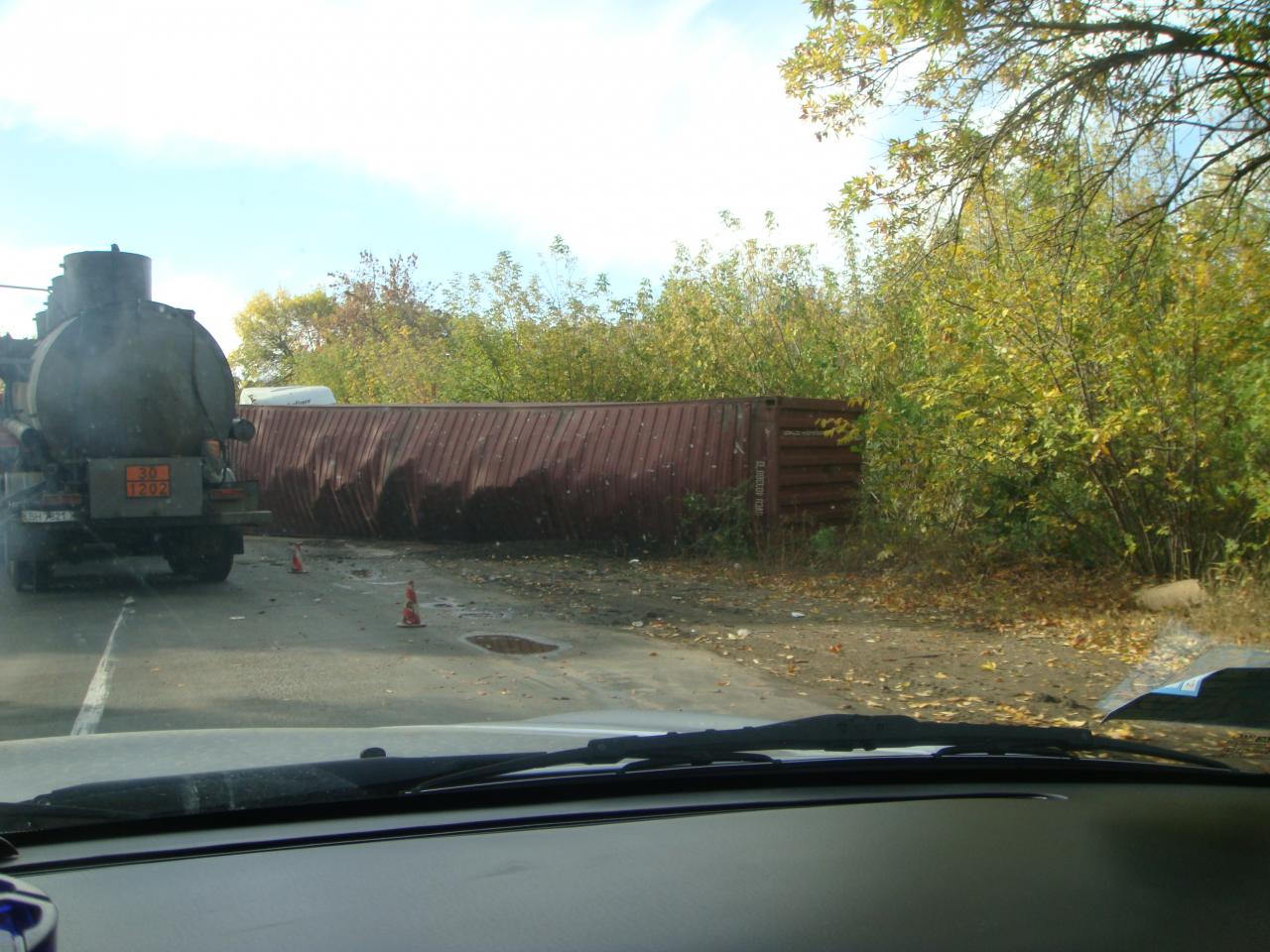 За Новой Долиной ДТП.Фура - голова "в мясо",контейнер на обочине.