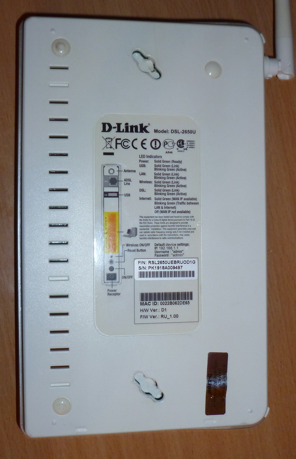Беспроводной маршрутизатор D-Link DSL-2650U/BRU/D