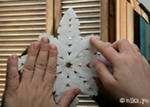 Мы вешаем на окна снежинки,на двери тоже-объемные,красивые,как у Юли ДеВиль.