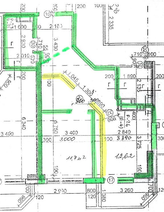 Avo, немного запоздалый ответ - но лучше поздно, чем никогда, вдруг Вам пригодится. Я летом заказал перепланировку однушки 46.05, меня терзали смутные сомнения, как все это будет выглядеть в реальности, а не на бумаге, поэтому сразу делиться с Вами своим креативом не стал, хотел сначала результат увидеть. Съездил на стройку в декабре, посмотрел готовую планировку - мне очень понравилось. Во вложении - бумажный вариант. Желтым цветом показаны стены базовой планировки, которые я изменил (то есть удалил). Зеленым - внешние и внутренние стены квартиры. По линии, нарисованной зеленым пунктиром я предполагаю поставить раздвижные двери, хотя еще точно не решил, и без них отлично получается. Получилась спальня площадью 11,7 м2, кухню я увеличил до площади 12,6 м2, а в центре квартиры получилась зона отдыха площадью около 16 м2 - в нее очень удобно вписывается большой угловой диван и ровно напротив него на косую стену я повешу большой телевизор. Если у Вас будет желание (и возможность) посмотреть квартиру "вживую" - зайдите в 3-й секции на 9-й этаж, там еще двери кажется не установили, по крайней мере в конце декабря только собирались.