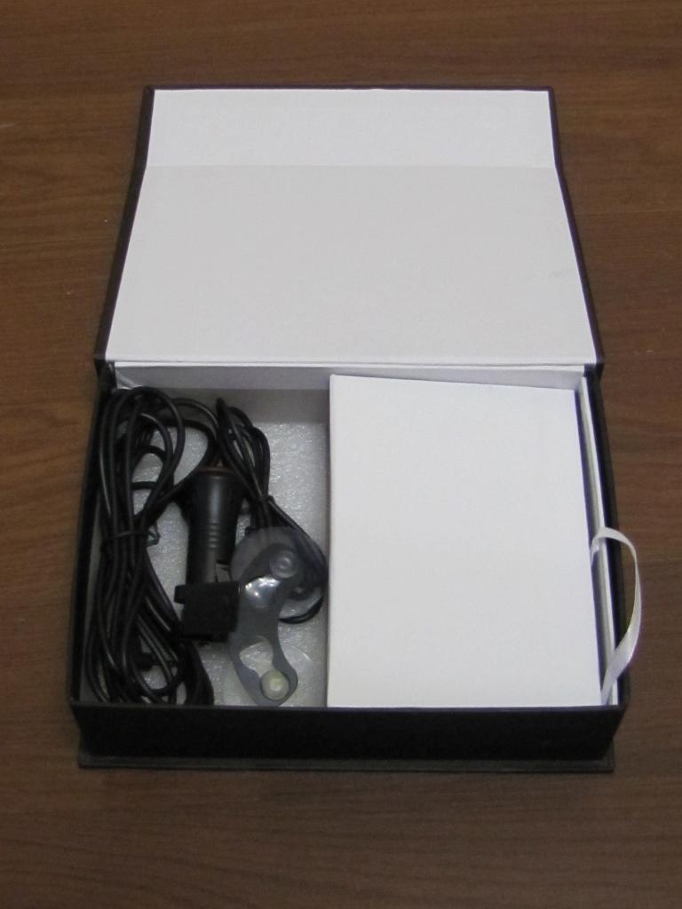 Комплектация: Инвойс, коробка, мануал по использованию, радар-детектор "The GHOST PRO", присоска на стекло, USB кабель для синхронизации с компом и сетевой кабель питания для подключения в прикуриватель 12 вольт.