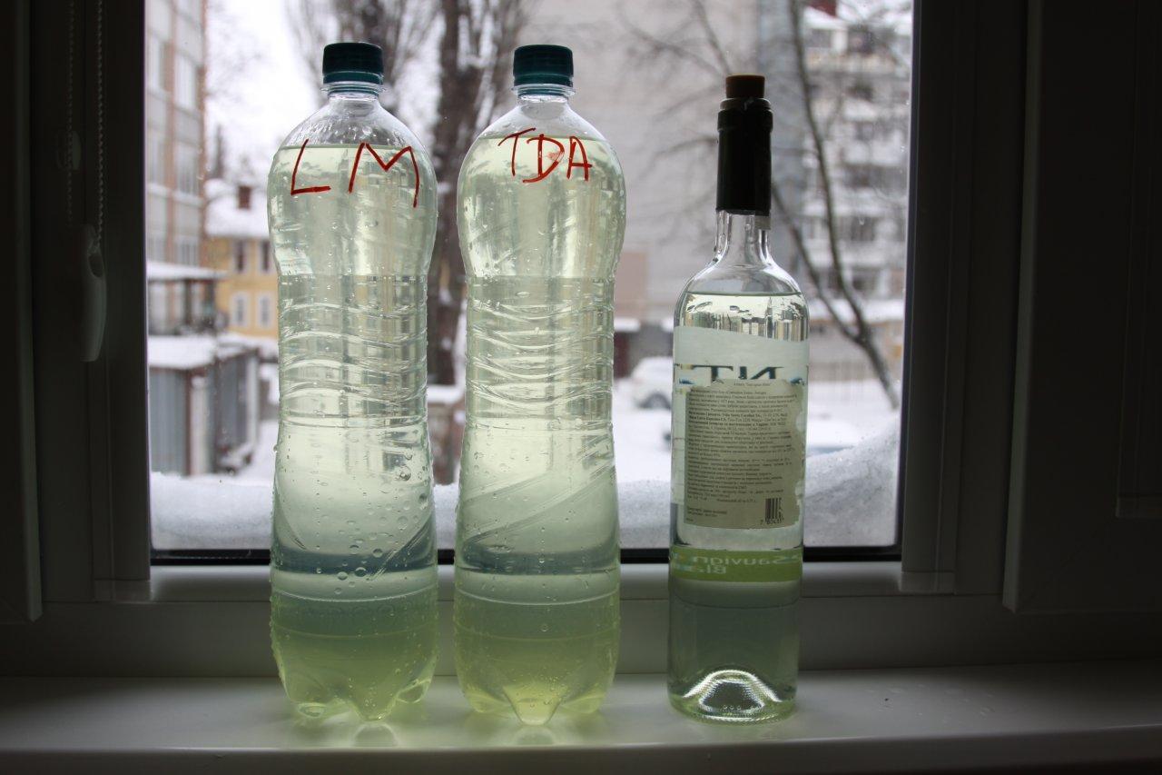 Было 3 образца - слева направо ДТ+Liqui Moly (LM), ДТ+Castrol TDA и "чистое" ДТ без добавок. Присадки добавлялись в пропорции в строгом соответствии с инструкциями производителя.