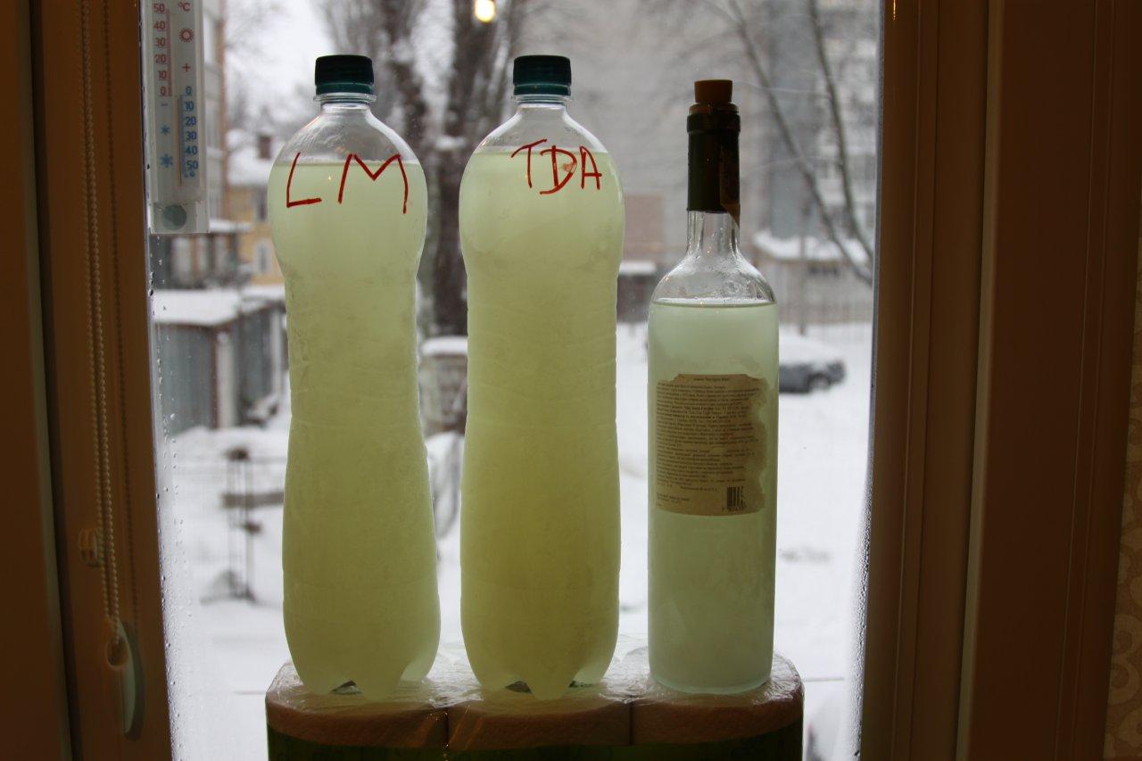 Как и обещал провел тест. В связи с отсутствием холодной погоды за окном, пришлось таки освободить морозилку, вымыть бутылки с дизелем до нейтрального запаха и оставить их при -20 до утра.