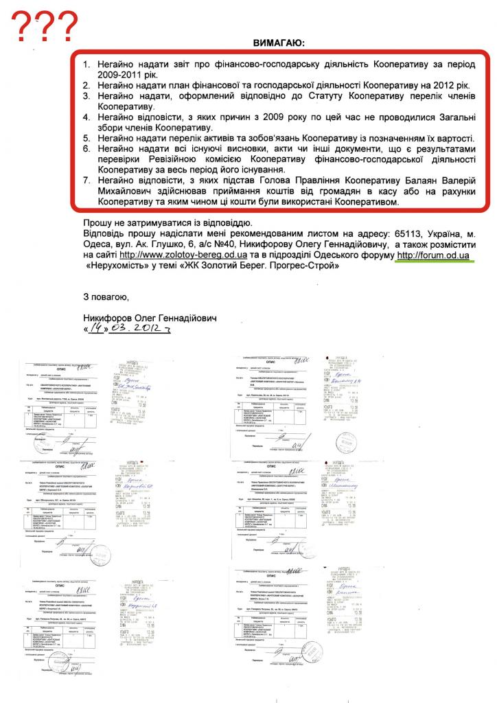 Если кто-то не обратил внимания - член Правления кооператива Балаяна, официально спрашивает Балаяна и его Ревизионную комиссию: