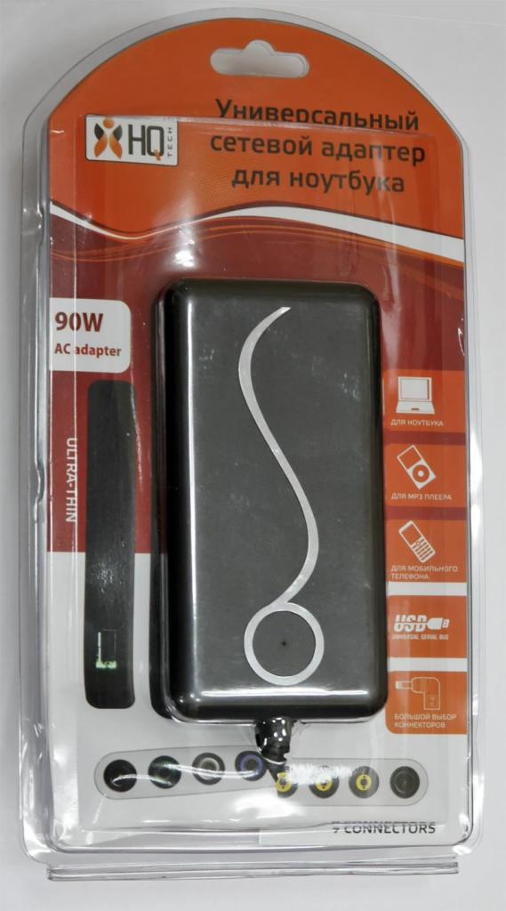 1. Адаптер питания универсальный для ноутбука HQ-Tech HQ-A90M2U, 90W (100~240V, 50/60Hz), ручная установка напряжений (12,15,16,18,19,20,24V), 8 переходников в комплекте, загнутые, 2 выхода USB, светодиодная индикация напряжения. - 25уе