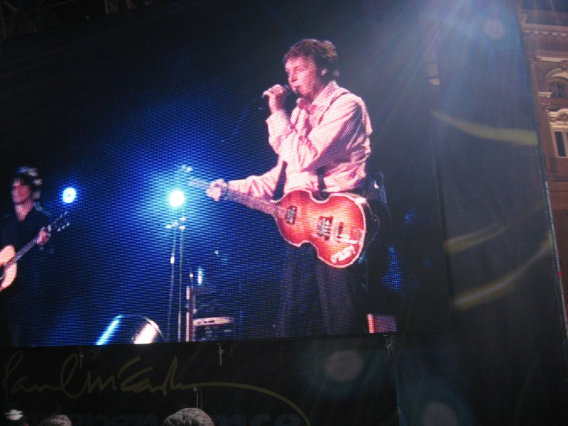 Когда сэр Пол вышел на сцену, о дожде вообще забылось как-то. В нашем секторе народ сам позакрывал зонтики, чтобы не заслонять просмотр друг другу. Да разве можно сравнить просмотр по телевизору с энергетикой концерта? Как он завел публику! Особенно, когда запел "украинскую народную песню" "Гоп, гей, гоп!"
