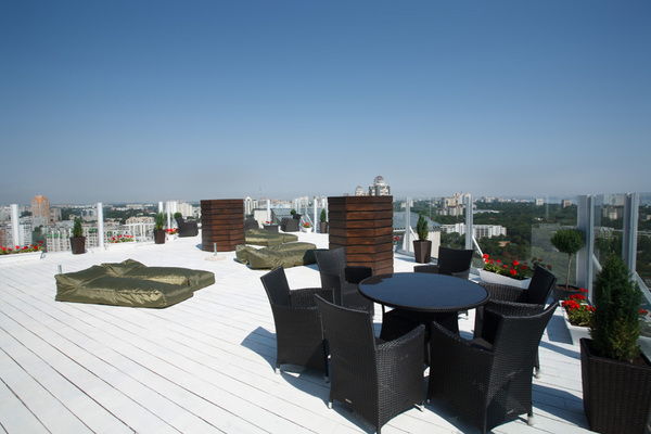 Это заведение зовется "Отель-апартаменты Пальмира". Сегодня как раз о нем узнала от знакомых. Находится на верхнем этаже Южной Пальмиры, что на Генуэзской. Есть ли там ресторан и какой - не знаю, но картинки красивые