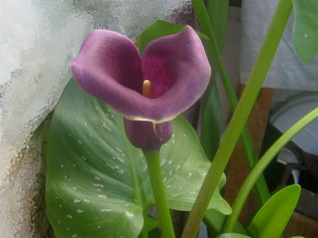Мои каллы все цветут, но им видимо не хватает света. Та, что черной должна была быть - сиреневая, красная стала оранжевой а желтые с коричневой серединкой получились белыми со сливового цвета внутренней частью. Вроди на балконе много света, а им похоже все равно не хватает.