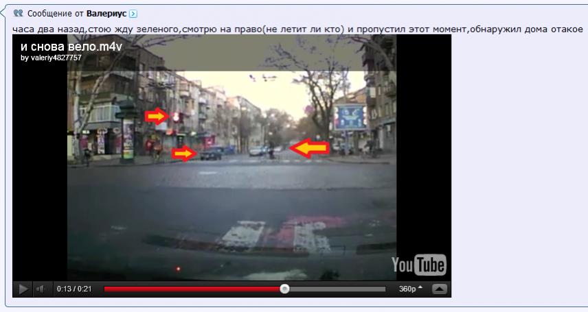 судя по скриншоту велосипедист выехал на дорогу на ярко-красный