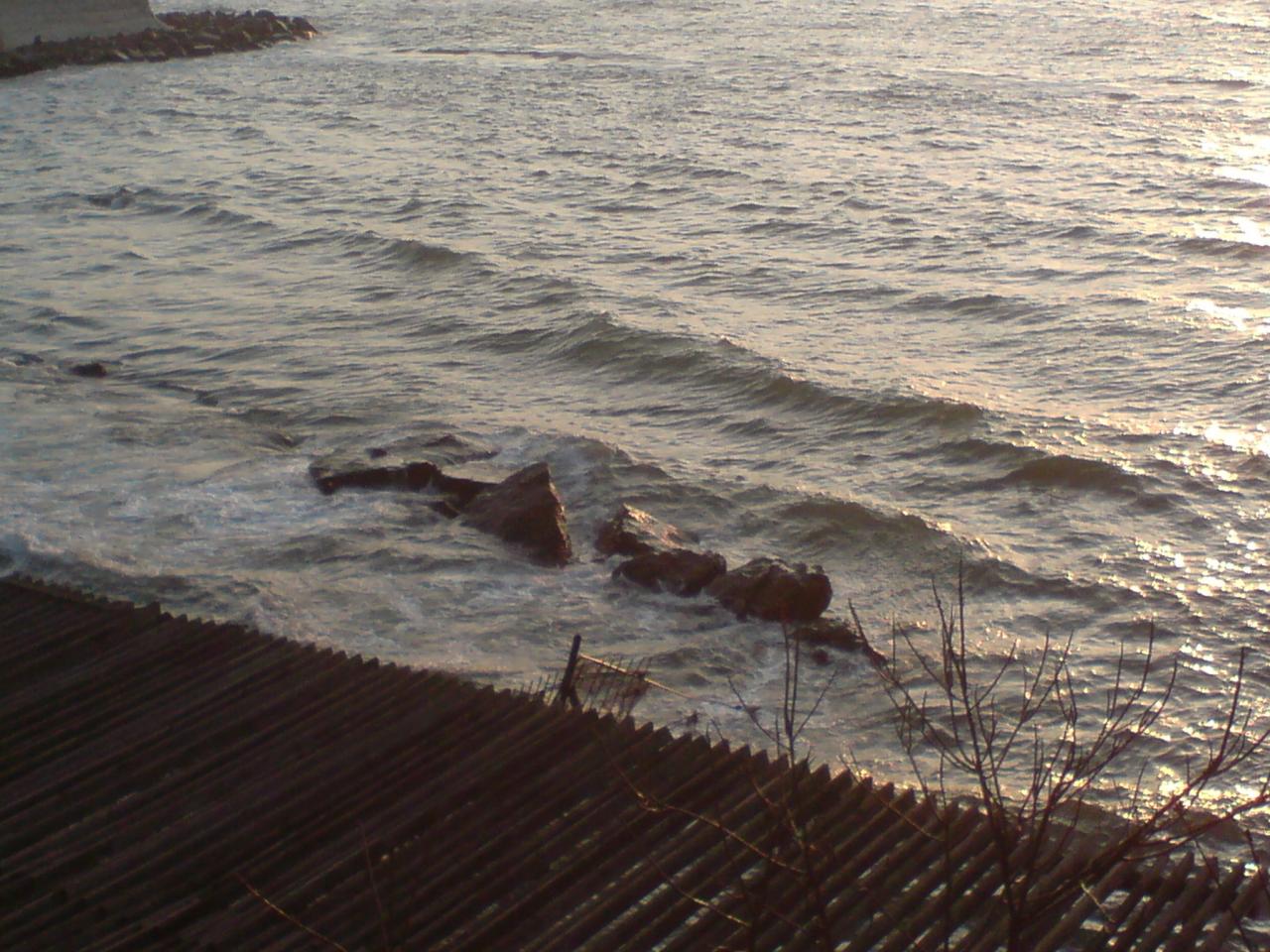 И таки Южный!Море уже успокаивается,вода полупрозрачная.Примерно +12.на берегу очень жарко было в 9 утра.Набережная строится.