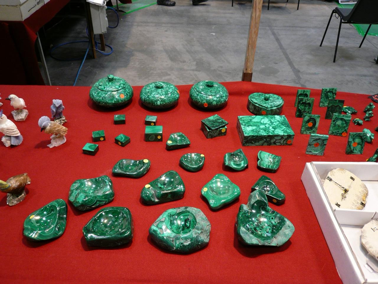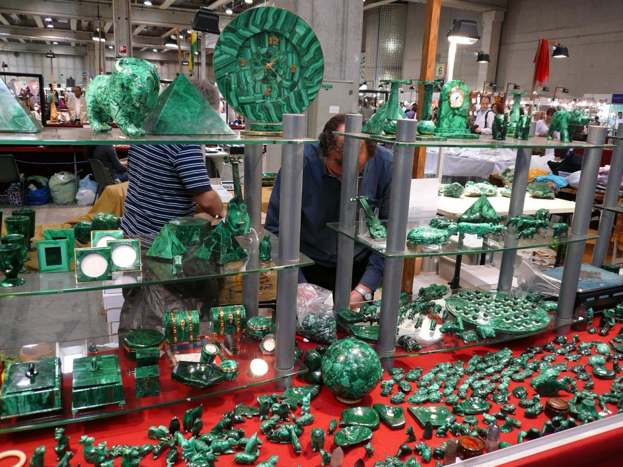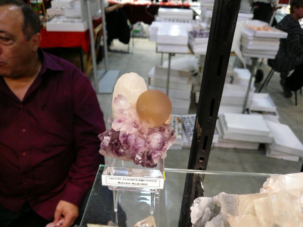 Короче да, цены у нас по сравнению с Украиной, очень даже демократичные)) все скидки делают без особых проблем. Особенно, учитывая, что это был последний день выставки и обратно тащить камни ни кому не хотелось. Поэтому аметисты и агаты бразильские вообще все в полцены отдавали. Но у них все друзы и жеоды начинаются от 10кг и больше. Поэтому я вспомнила мороку со своей 15кг-ой аметистовой друзой и забила на бразильцев. Мне и этой вполне хватает. Кстати, правда поняла, что могла купить похожую на выставке намного дешевле. Вобщем, цены, как мне показалось даже упали с прошлого года. Ажиотажа у диких камней нет вообще никакого. Народ массой тусил только в отделах с бусами и прочей бижютерией. Их выселили теперь на периметр павильона, что очень удобно. Раньше они стояли между столиками с коллекционкой и засоряли эфир. А теперь навели порядок. Бусы и эзотерические примочки по периметру, в центре несколько рядов со стендами изделий из камней: шары, пирамиды, фигурки, резьба и прочее. Потом ряды по центру: коллекционка, где можно было вообще ходить и разглядывать все спокойно. Стенды огромные! Продавцы все доброжелательные только в основном все гости Италии, поэтому по итальянски мало кто говорил)) общались больше жестами и мимикой)) И последние ряды с окаменелостями разными. Вобщем, теперь ориентироваться на выставке стало проще. Взял карту, посмотрел, что тебя интересует, отмел сразу то, что не надо и все, идешь уже проложенным маршрутом)) не отвлекаешься)) и время и силы экономятся. А то, в прошлый раз бегала как угорелая от стенда к стенду. А в этот раз тусила почти постоянно по коллекционке. Народу там почти никого не было. Так что, когда пошла на второй круг, продавцы уж со мной здороваться стали и улыбаться радостно)) думали, что раз я вернулась, то наверное купить что-то хочуА вообще, я теперь решила только на выставках и затариваться каменьями. Выбор шикарный. Все можно посмотреть, потискать, понюхать)) и цены намного ниже, чем в тех же магазинах. Буду теперь раз в полгода вылазки такие делать. Все ж для бюджета полезнее. Однозначно к французам за шарами наведаюсь. Они все наши выставки посещают. Я вот даже думаю, не рвануть ли мне ну Туринскую в октябре. Посмотрела, неплохой список участников)) Короче, все! я с каменными магазинами завязала) теперь становлюсь выствочной тусовщицей. Мне это дело намного больше нравится