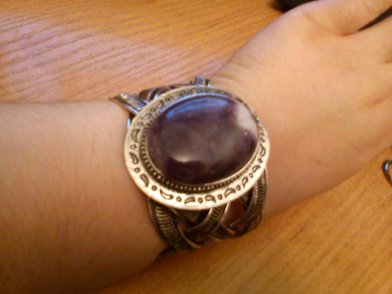 СЕгодня попался мне на глаза браслет с аметистом в самом неожиданном месте в магазине обуви и бижутерии Миратон.....среди стекляшек был один, это меня удивило ..я его и купила ...там вставлен большой кабашенчик...даж глазам не поверила ...но ! иризация поставила все на свои места..камень настоящий ..вот так в неожиданных местах случаются такие вещички))