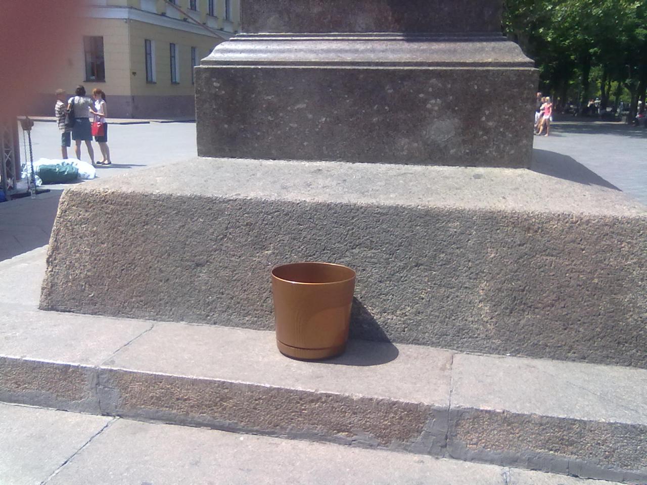 Потом решил понаблюдать... Оказывается, к памятнику Дюку приставлено пластиковое ведро, куда туристы должны скидывать мелочёвку!!! Пипец... Дюк что, попрошайка??? Позор. Причём регулярно ходят патрули, ничего не видят. Тело - борец за русский язик периодически прокрадывается к ведру и снимает кассу. Вот так вот... Превратили город в костусевку... Ненавижу тварей.