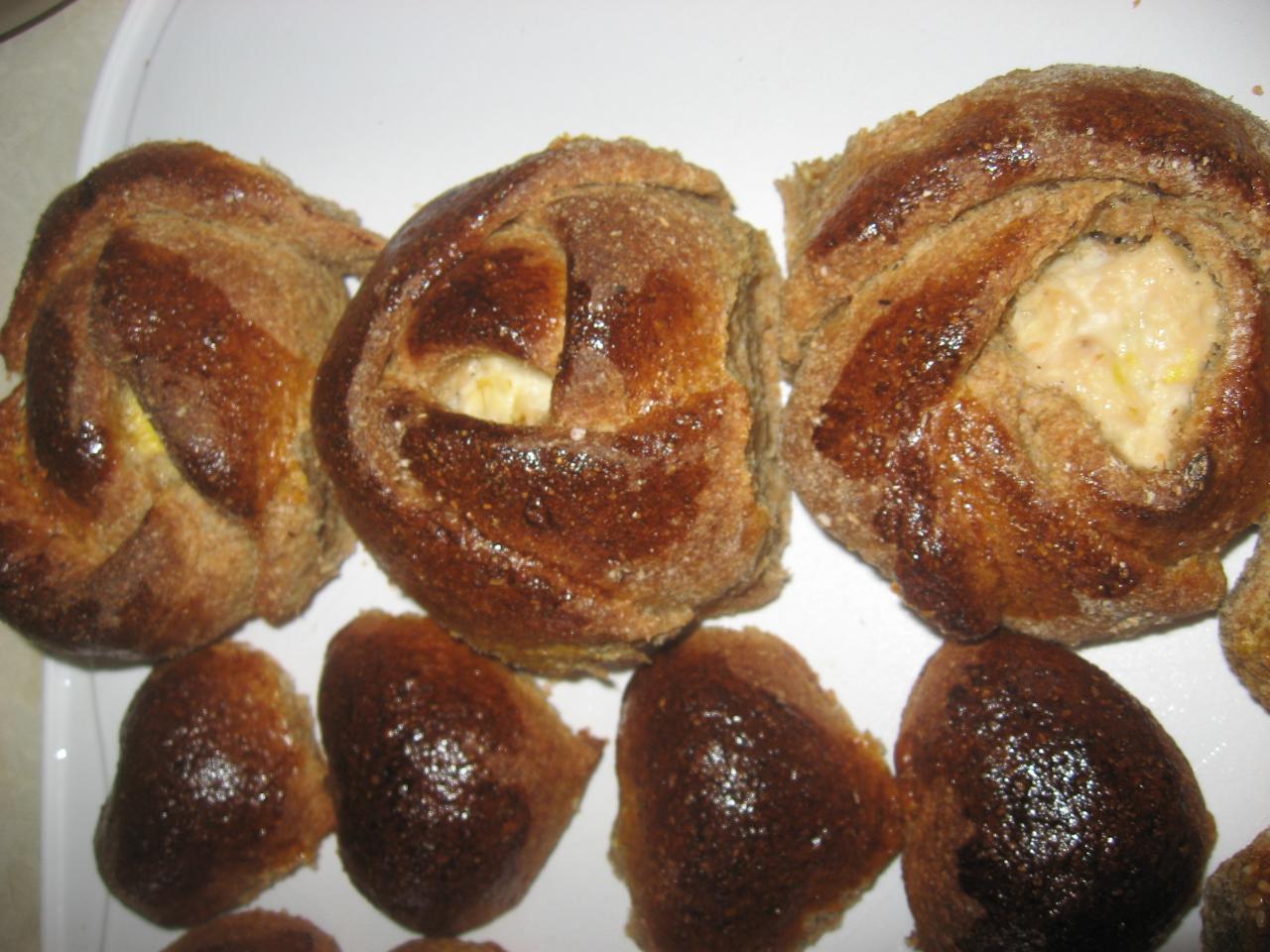 Вот мои ржанные пирожки-сердечки и розочки с мясом и кунжутные булочки. Тесто по рецепту T@tk@, ТОЛЬКО МУКА РЖАНАЯ