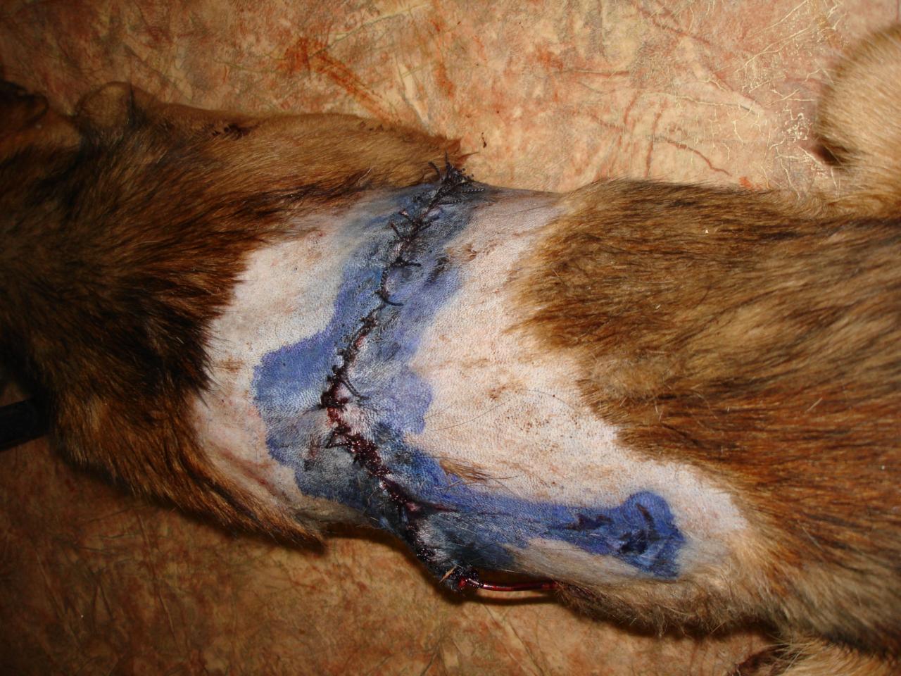 Девочка которая его зашивала сказало, что раны были рваные (по ее мнению это собаки, а не человек).