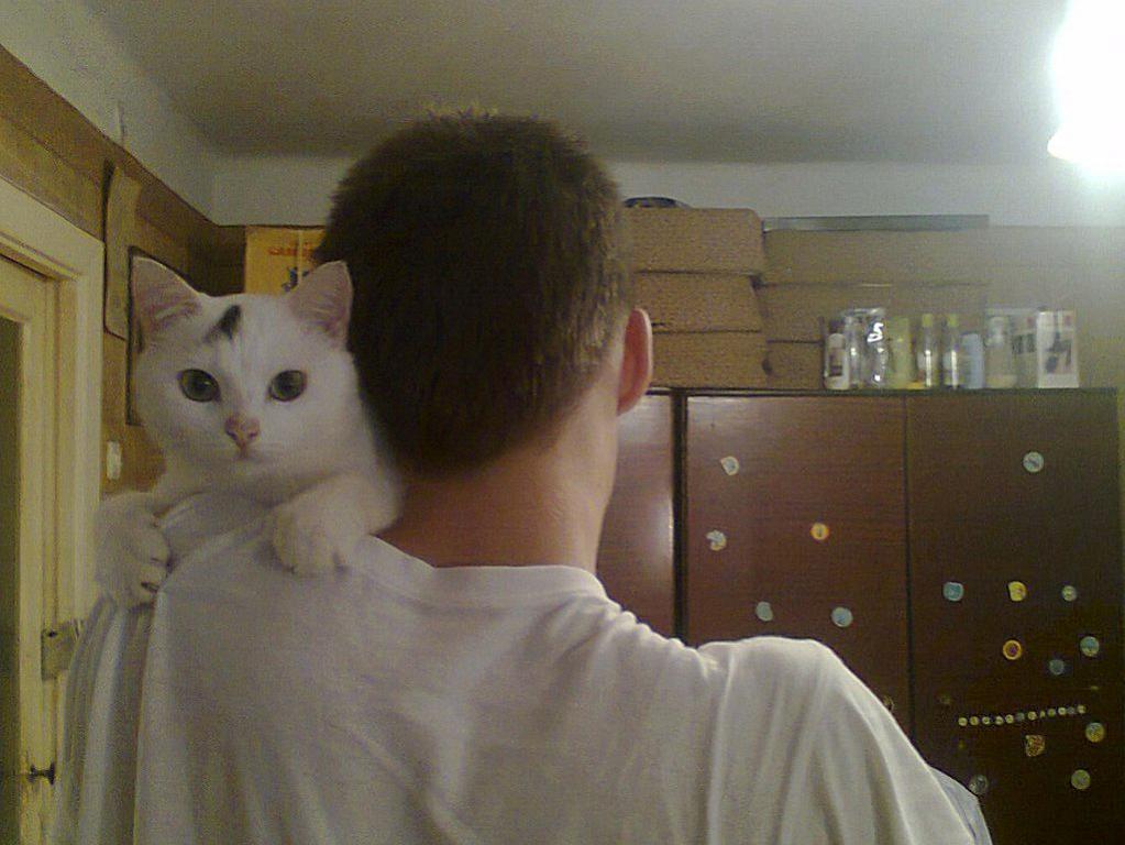 Вчера с дочкой собрались ехать в НД к Василисе, и на выходе со двора, за нами увязался "хвостик", и очень не хотел от нас отставать - мы решили прихватить его с собой, в НД. Всю дорогу тихонько спал в переноске. Это очаровательный котёнок, месяцев семи-восьми, с изумрудными глазами, изъеденными грибком ушками, и конечно, лишаём. Сейчас проходит лечение в НД.