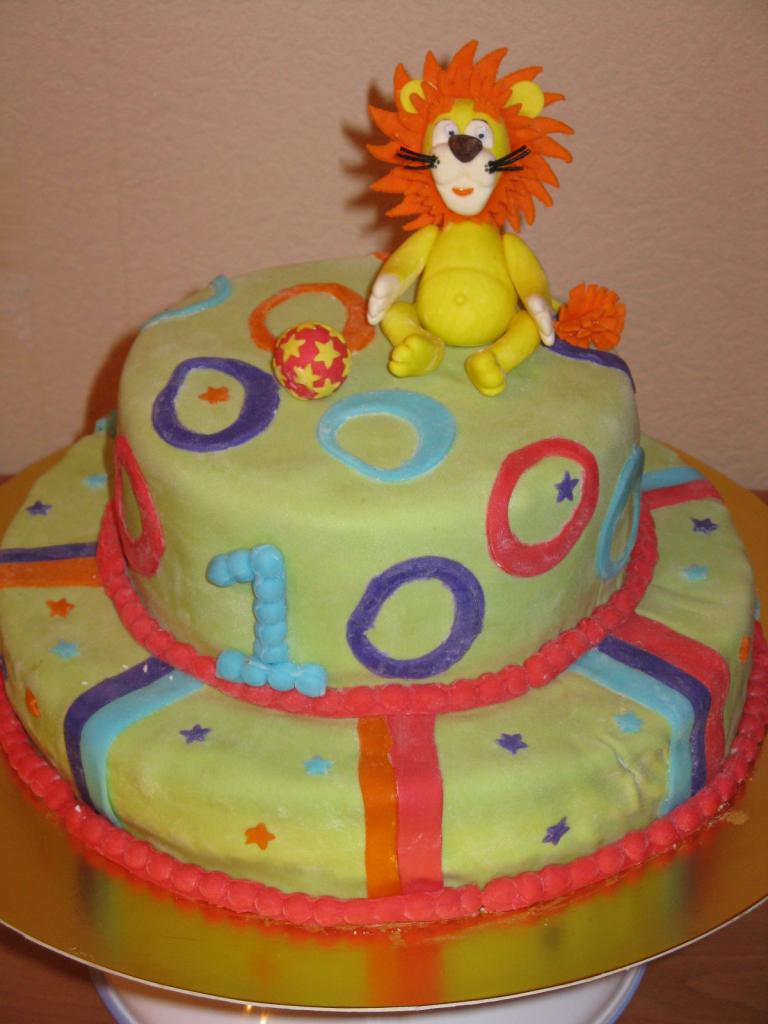 хорошенький торт,Alenkaya!особенно львонок,как из мульта!Как ты его делала?какими-то формочками?