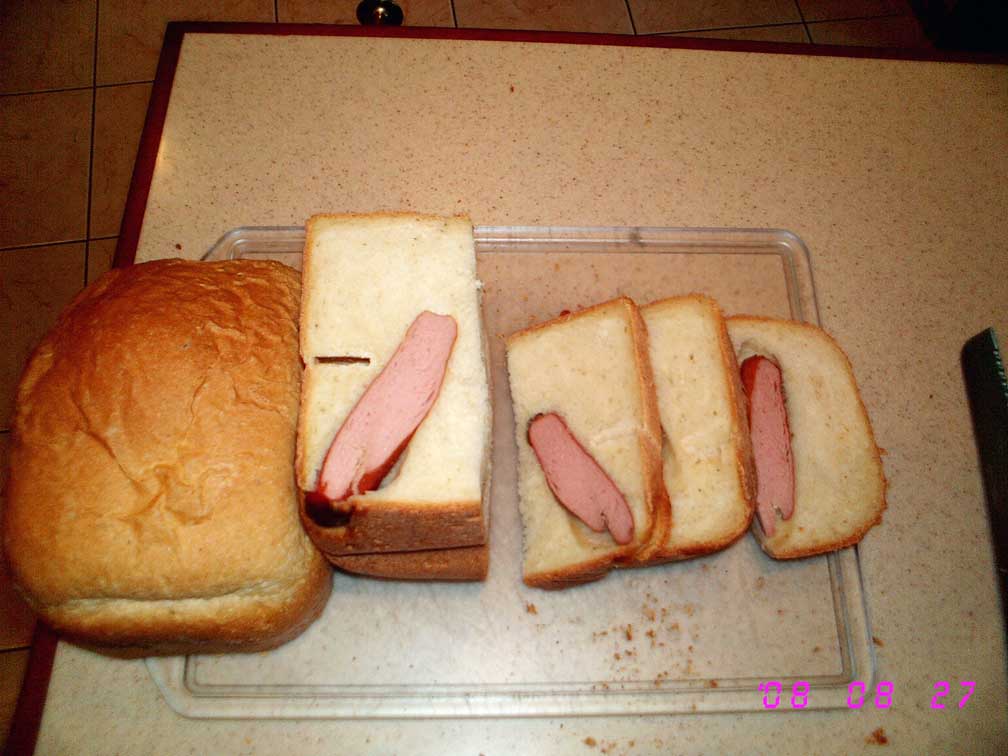 Цель опыта - выяснить, вылезут ли сосиськи из хлеба или растворятся в нем