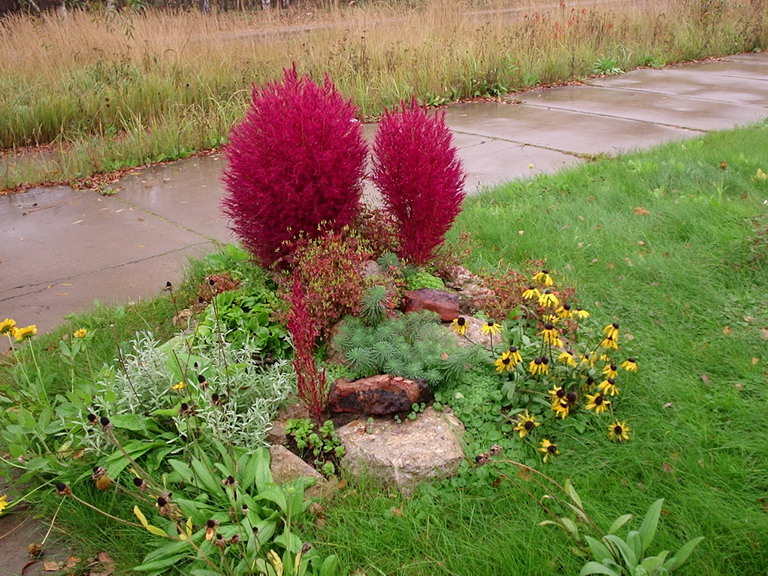 Чудный однолетник, стрижётся хорошо, осенью действительно краснеет и нашу жару переносит. Сеяла несколько лет подряд - не всходил, когда сеять перестала, он сам откуда-то взялся. Говорят, хорошо сеять под зиму, но у меня не получается, может от семян зависит, надеюсь что теперь будет сам себя размножать.