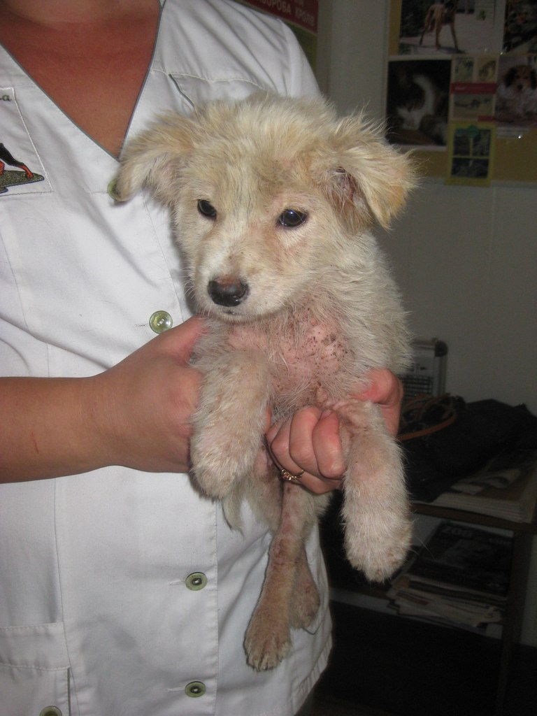 В Лузановке был найден щенок.Он жалобно скулил и бегал по дорожке.Вид у него был ужасный...Грязный,местами облысевший с каким-то струпом на лапках и язвами.Он все время кусал себя и дрожал.Пройти мимо мы не смогли.Отвезли в клинику в Новой Долине.По дороге он спал.Лапки были все в крови.Малыша назвали Фунтик.Ему 2-2,5 месяца.Температура 40,5.Скорее всего у него инфекционное заболевание в сочетании с вирусом.А также блохи,клещи и глисты(Очень нужны финансы,корм,пеленки.Без Вашей помощи я не потяну лечение этого карапуза.Заранее спасибо всем!Кому не безразлична судьба Фунтика - звоните по номеру 0637520296.Диана