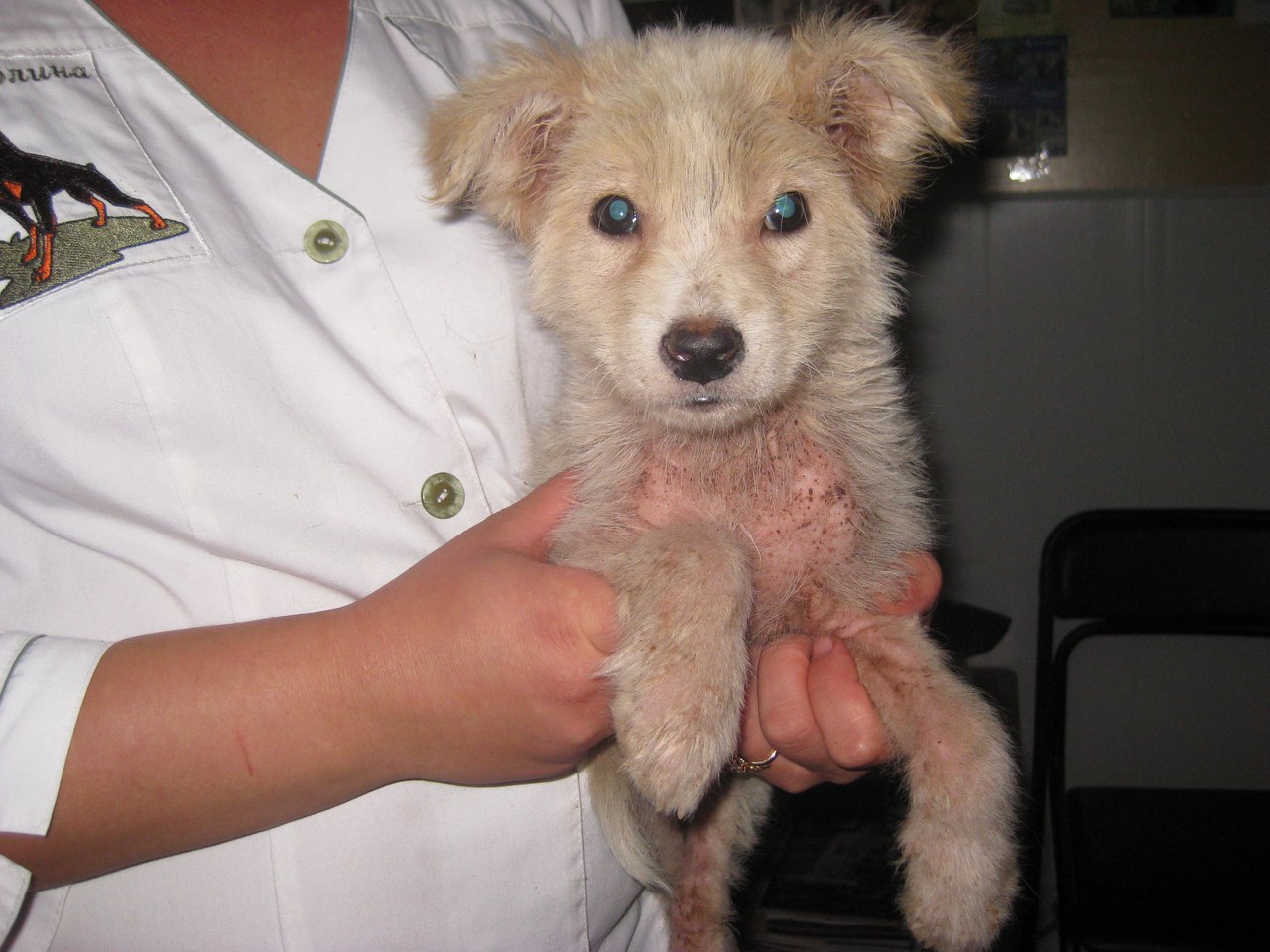 В Лузановке был найден щенок.Он жалобно скулил и бегал по дорожке.Вид у него был ужасный...Грязный,местами облысевший с каким-то струпом на лапках и язвами.Он все время кусал себя и дрожал.Пройти мимо мы не смогли.Отвезли в клинику в Новой Долине.По дороге он спал.Лапки были все в крови.Малыша назвали Фунтик.Ему 2-2,5 месяца.Температура 40,5.Скорее всего у него инфекционное заболевание в сочетании с вирусом.А также блохи,клещи и глисты(Очень нужны финансы,корм,пеленки.Без Вашей помощи я не потяну лечение этого карапуза.Заранее спасибо всем!Кому не безразлична судьба Фунтика - звоните по номеру 0637520296.Диана