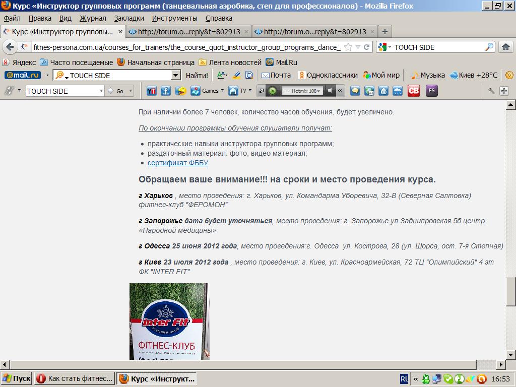 1. В адресной строке написано инструтор групповых программ танцевальных направлений