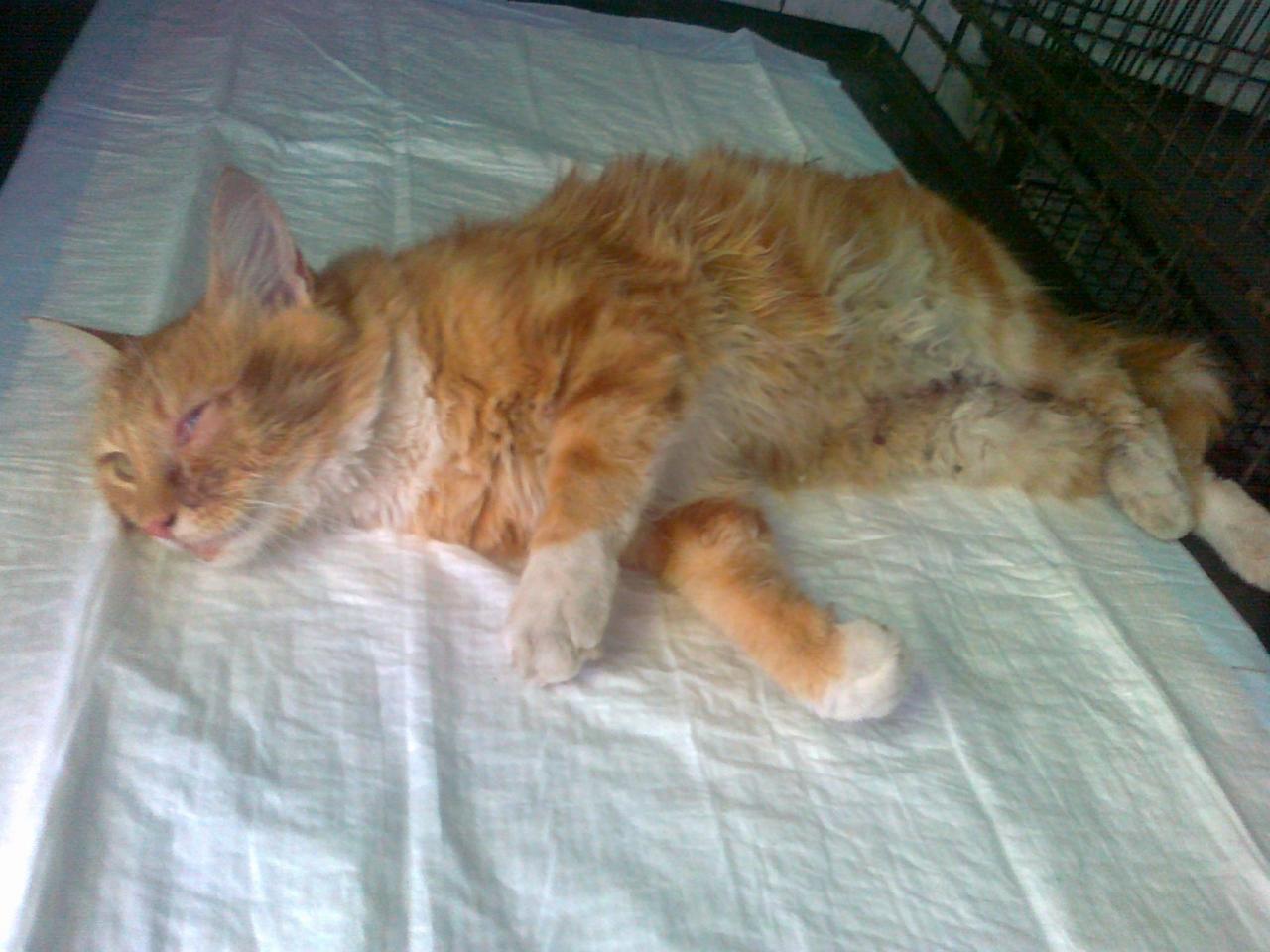 Котофей попал в клинику с переломами таза и оскольчатым переломом бедреной кости, в ходе осмотра животного была обнаружена ещё и прободная язва роговицы. Владелец не хотел лечить кота. За финансы оставленные на усыпление котофею была оказана помощь. Сейчас животное на стационаре в ветеринарной клинике "Зоовет", коте был проведён остеосинтез и за одно кастрация. На днях проведена операция на глазном яблоке. Нужны такие препараты как стекловидное тело и видисик ; котик очень ласковый, молодой 2г, средней пушистости, бело рыжий. Кто возьмёт инвалидика домой???