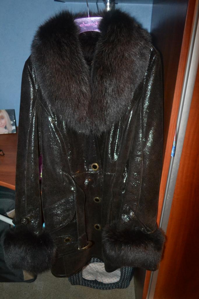 Есть дубленочка, Ваш размер фабричная Турциия (привезена оттуда) черная, внутри мез черный с рыжим под поясок, в идеальном состоянии 1000 грн.