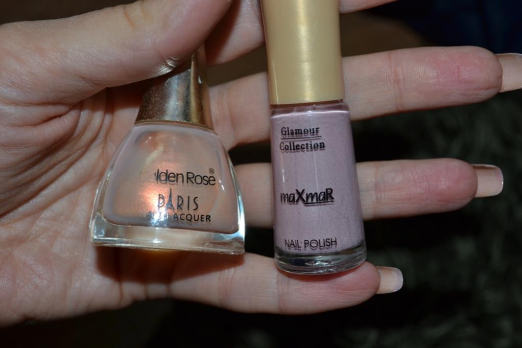 Вот мой сегодняшний маникюр. Хочу похвастаться сочетанием двух лаков. Бывают таких красивые цвета, то ли перламутр, то ли очень мелкий блеск, ещё и хамелионистые, но на ногти ложатся полупрозрачно и даже в два слоя дают просветы. И вот нашлось решение - первым слоем нанесла непрозрачную, телесного цвета эмаль, а сверху ту красоту от Голден роуз, которая уже 100 лет без дела валялась.