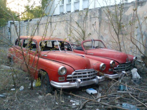 Как то ко мне приехали друзья из Москвы. Я им показывал город. И о чудо... в одном старом дворе в центре стояли две красные машины. Одна победа, другая кажися зил. (не разбираюсь) С целыми стёклами, живым салоном, довольно ржавыми, но в целом неплохо выглядевшими. Стояли там видать не один год. Сделал фотку, найду выложу.