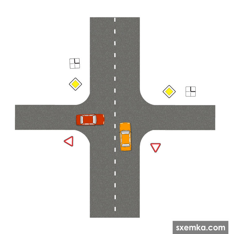 Красный не предоставил преимущество на равнозначном перекрестке и имел помеху справа.