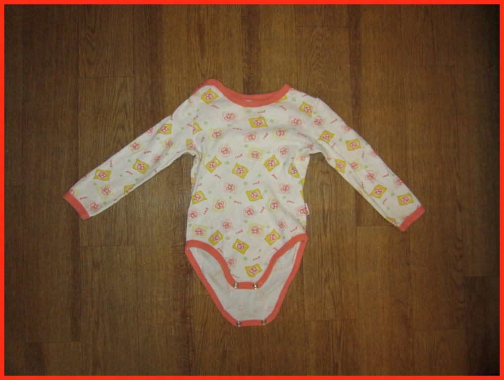белый Mothercare с надписью ( 6-9 мес) длина застегнутом виде по спинке от шейки до низа- 37 см