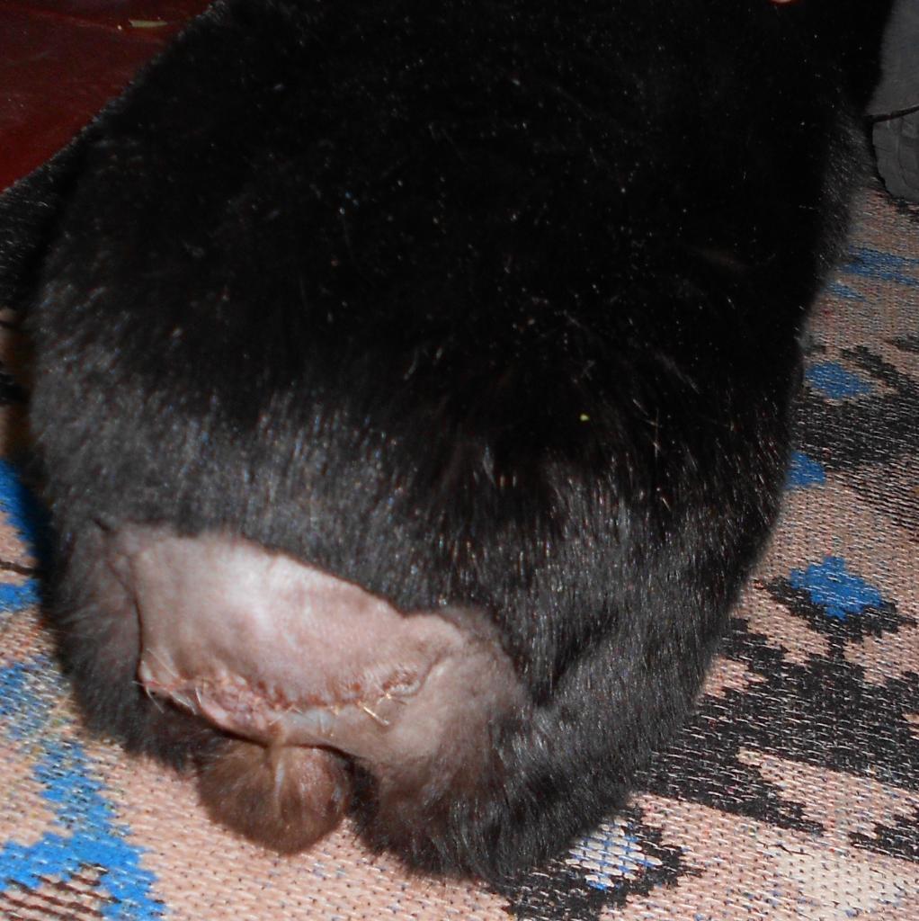 Очень нужна помощь котику Чернышу, попавшему в неравную схватку с собаками. У бедолаги содрана кожа с хвоста, травмированы позвонки и задета часть мышечной ткани попы. Хвост восстановлению не подлежит - единственный выход ампутация.