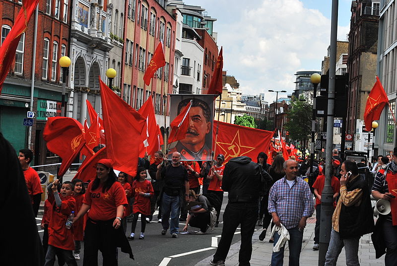 Banner of Stalin in London May 1, 2010 in Clerkenwell, London, GB.