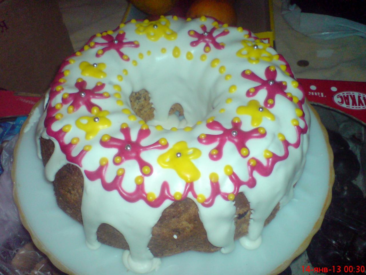 и залила всё белковой глазурью, а украшала сахарной глазурью