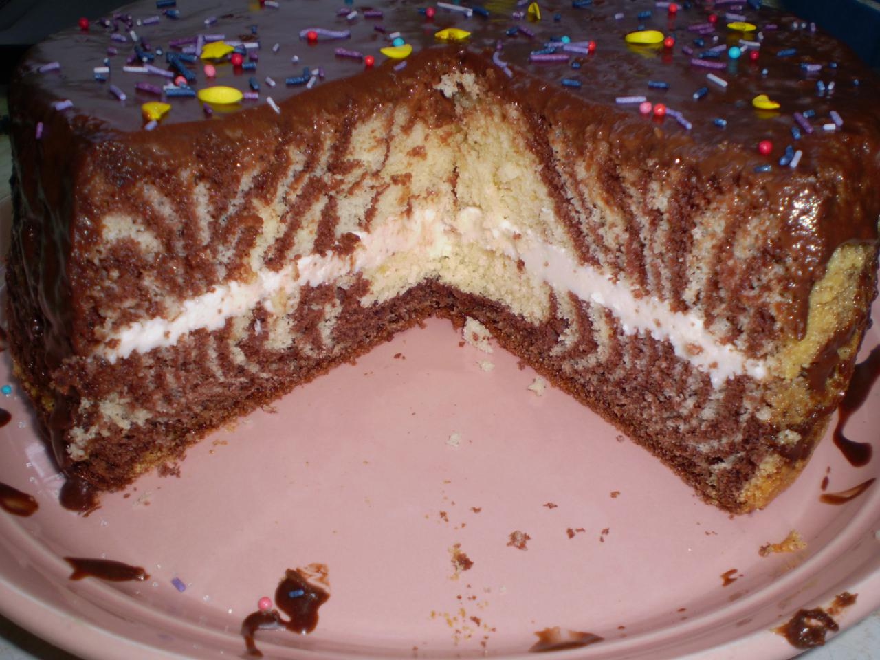 Бисквит вынуть на решётку (вместе с бумагой), остудить, бумагу снять, разрезать поперёк и промазать любым кремом (я быстренько приготовила сметанный), сверху полить шоколадной помадкой.