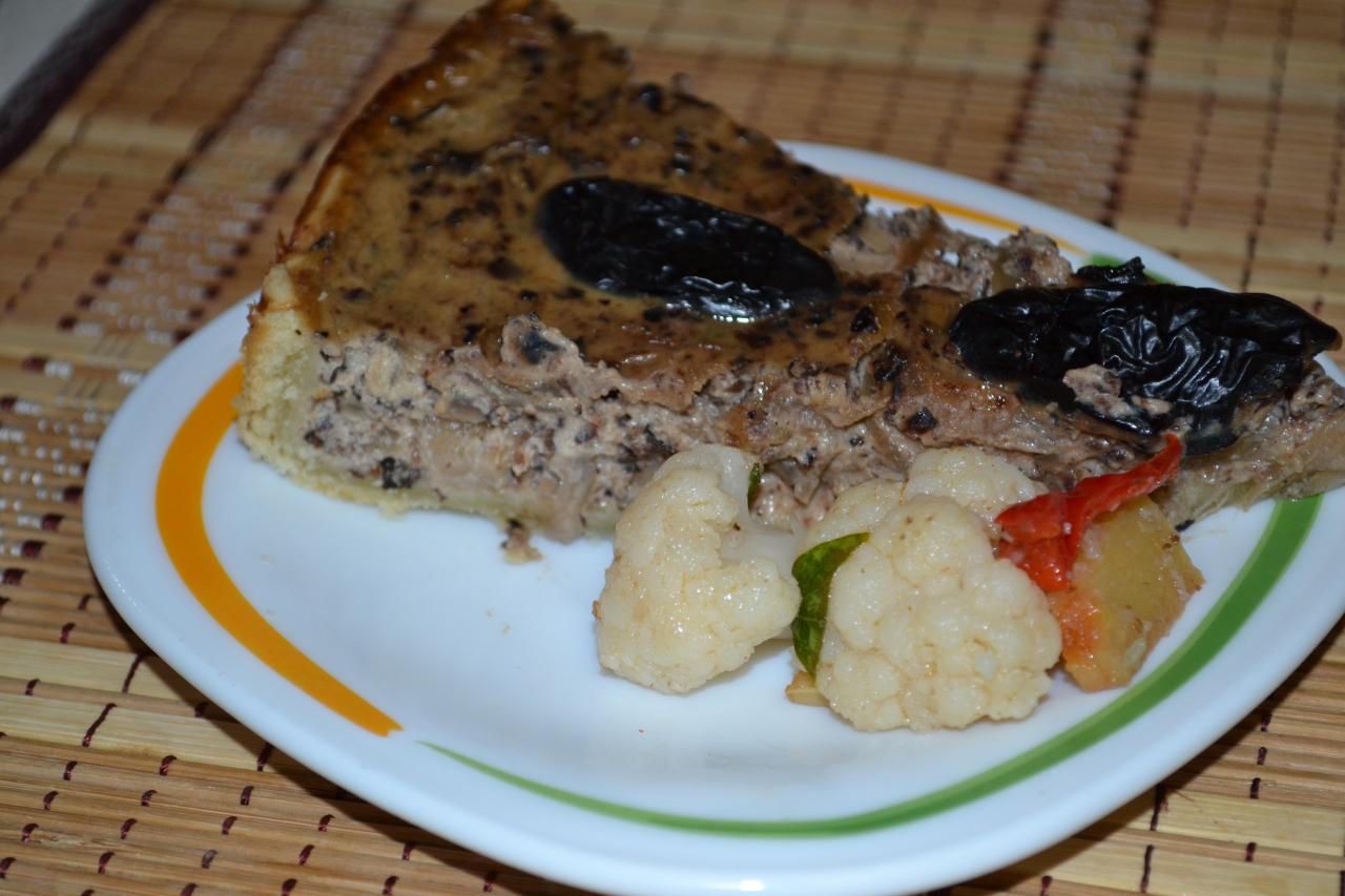 Необычно и вкусно! Правда, у меня форма 26 см, поэтому начинки много получилось, и чернослива в начинке больше почему-то, не как у тебя на фото. Но нам понравилось! Спасибочки!