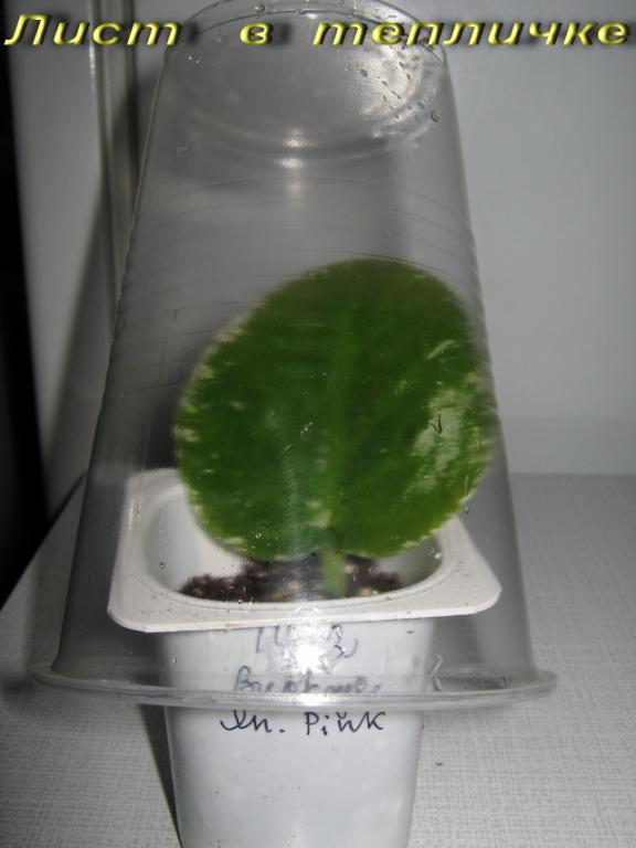 Черенок (на листе) оставляю не больше 3-4 см. Для мини укорачиваю до 2 см. Срез делаю чистым ( протираю спиртом) лезвием и присыпаю толченным древесным углем. Сажу в приготовленную смесь, слегка поливаю и в такую тепличку. Полив делаю один раз в две-три недели, смесь должна быть влажная ( не болото), можно сверху положить влажный мох сфагнум. Приживаемость 100%.