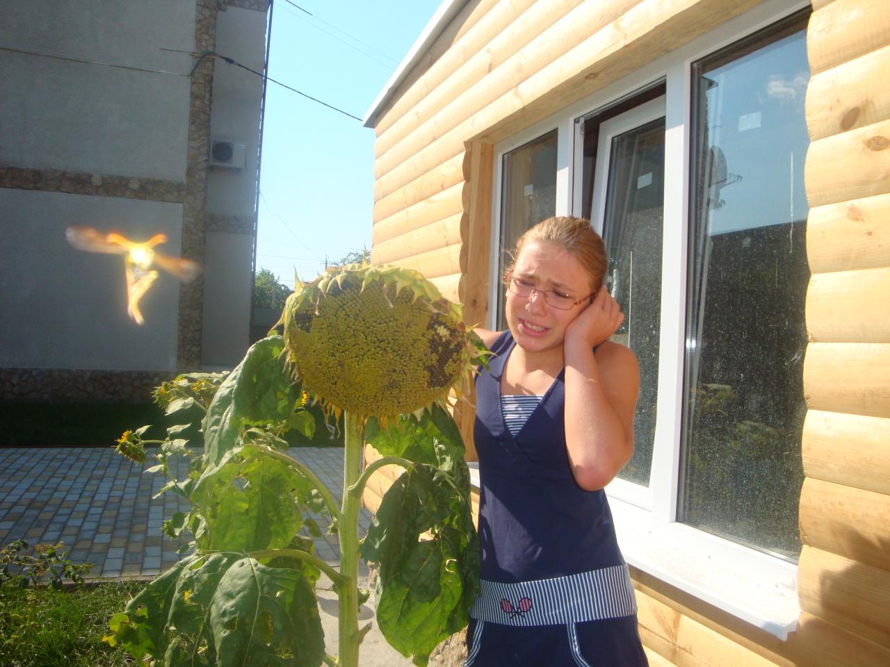 А в тему "кому улыбается" у меня есть интересное фото))) И опять же, на сеструху мою не смотреть, она укололась о ствол подсолнуха))))