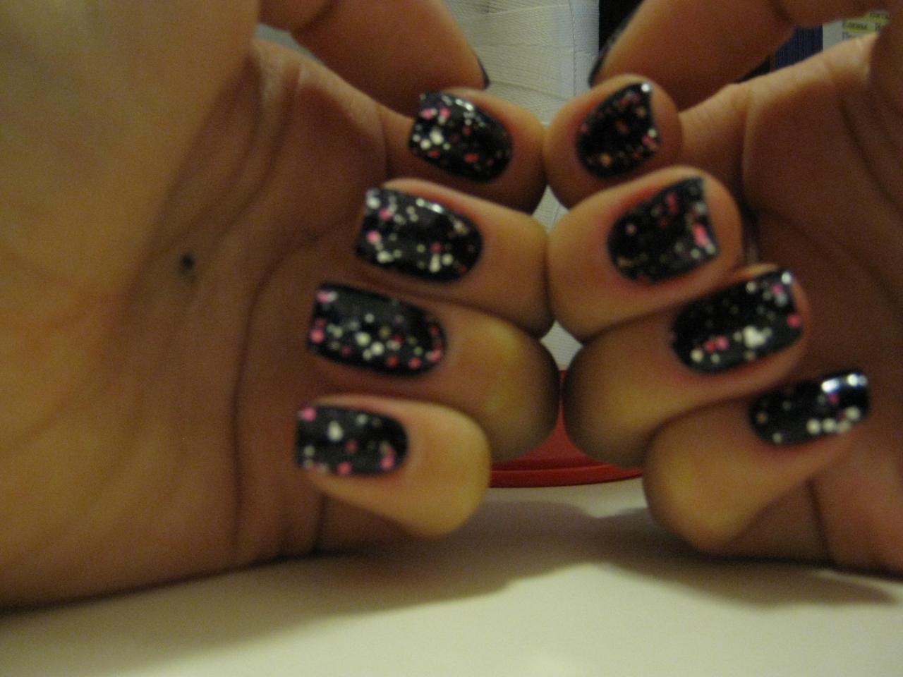 А моя мыльница не при дневном свете и вовсе отказывается нормально фоткать, но не похвастаться не могу, так что помучаю вас некачественными фотками покаМеня снова переклинило на OPI Stay The Night, целый день мужественно проходила в нем без топа, а на ночь сдалась и сделала легкий тюнинг. На результат муж выронил челюсть и сказал - круто, галактика!