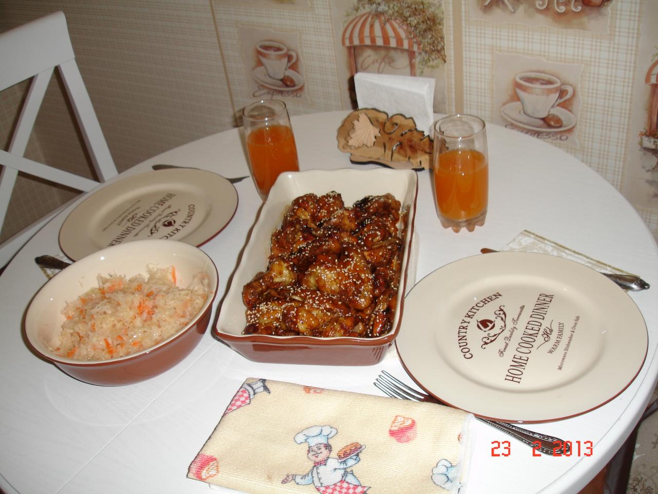 , а сестра еще и хлебушком прошлась по посудине, после поедания крылышек. В общем я была горда