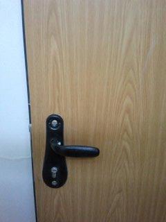 А если поставить ручку на розетке и купить отдельную, круглую броненакладку? Если болты только изнутри, след после них останется - заделать, закрасить,заклеить можно будет.