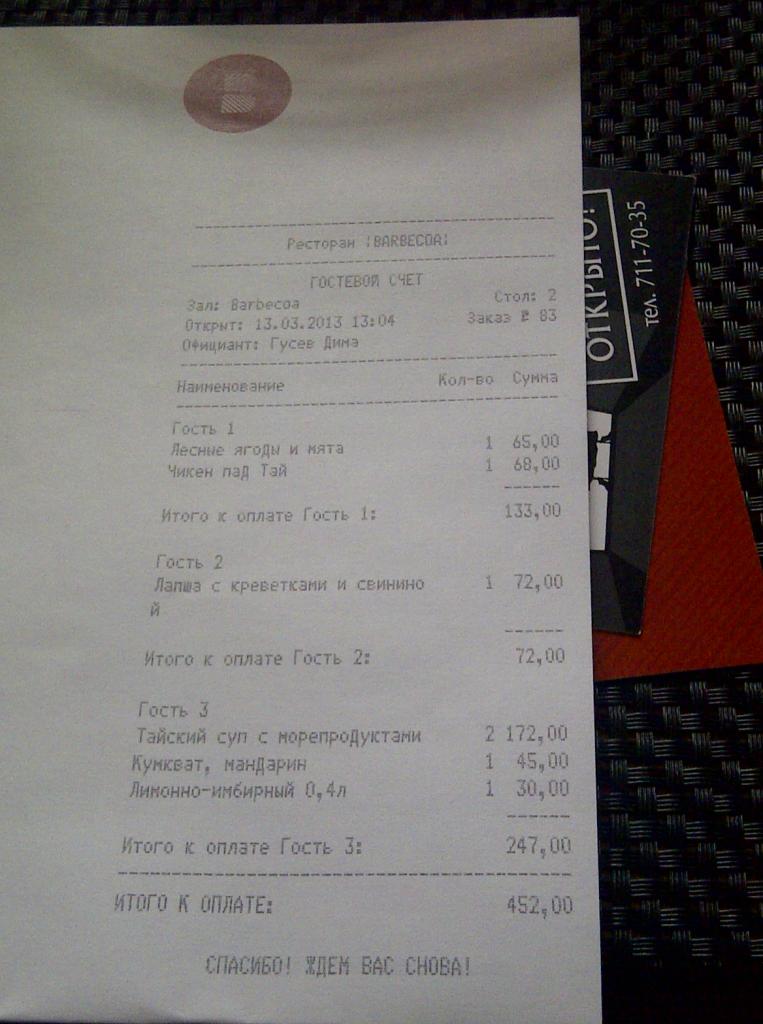 Забыла, официант сказал, что карточки Маман и Рокка действуют)