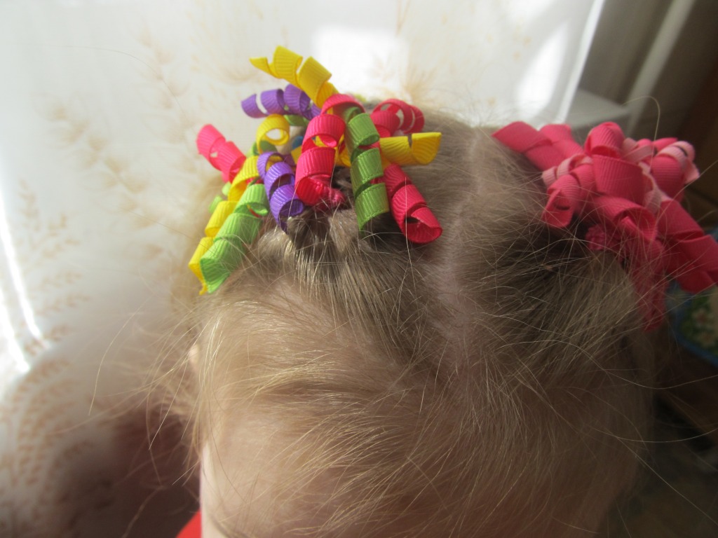 Возможны разные цветовые решения, различные виды бантиков, спиралек, к любому наряду.. Можно заколки пластиковые, металические крокодильчики ( производство Америка) , резиночки, повязочки и ободочки.