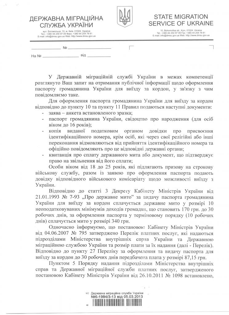 Вот обратился в ДМС Украины по поводу обязательных платежей необходимых для загран паспорта.