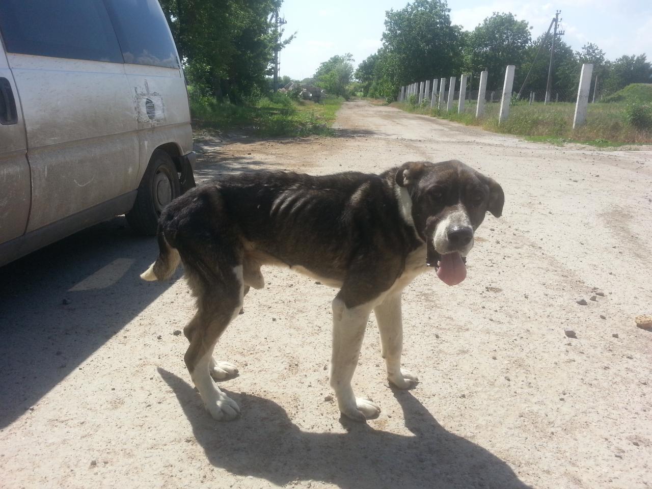 В течении недели общались с теми,кто видел, выясняя подробности и договаривались с мужчиной,который отозвался помочь в транспортировке.Сегодня дочка с Павлом Гидрантом и отозвавшимся мужчиной -Дима infiniti_od , отправились в путь.Место и собаку нашли довольно быстро.Оказалось, что пес живет на территории какого-то предприятия. Его периодически подкармливают 2 охранника, а третий терпеть не может и не кормит,а проганяет.Добрый спокойный, очень контактный пес.Он не поправляется и очень истощен, видно сразу,что болен, весь в клещах...Зиму перенес тяжело, хотя держится на территории,но будку сделать никто не догадался.Появился года 2 назад.