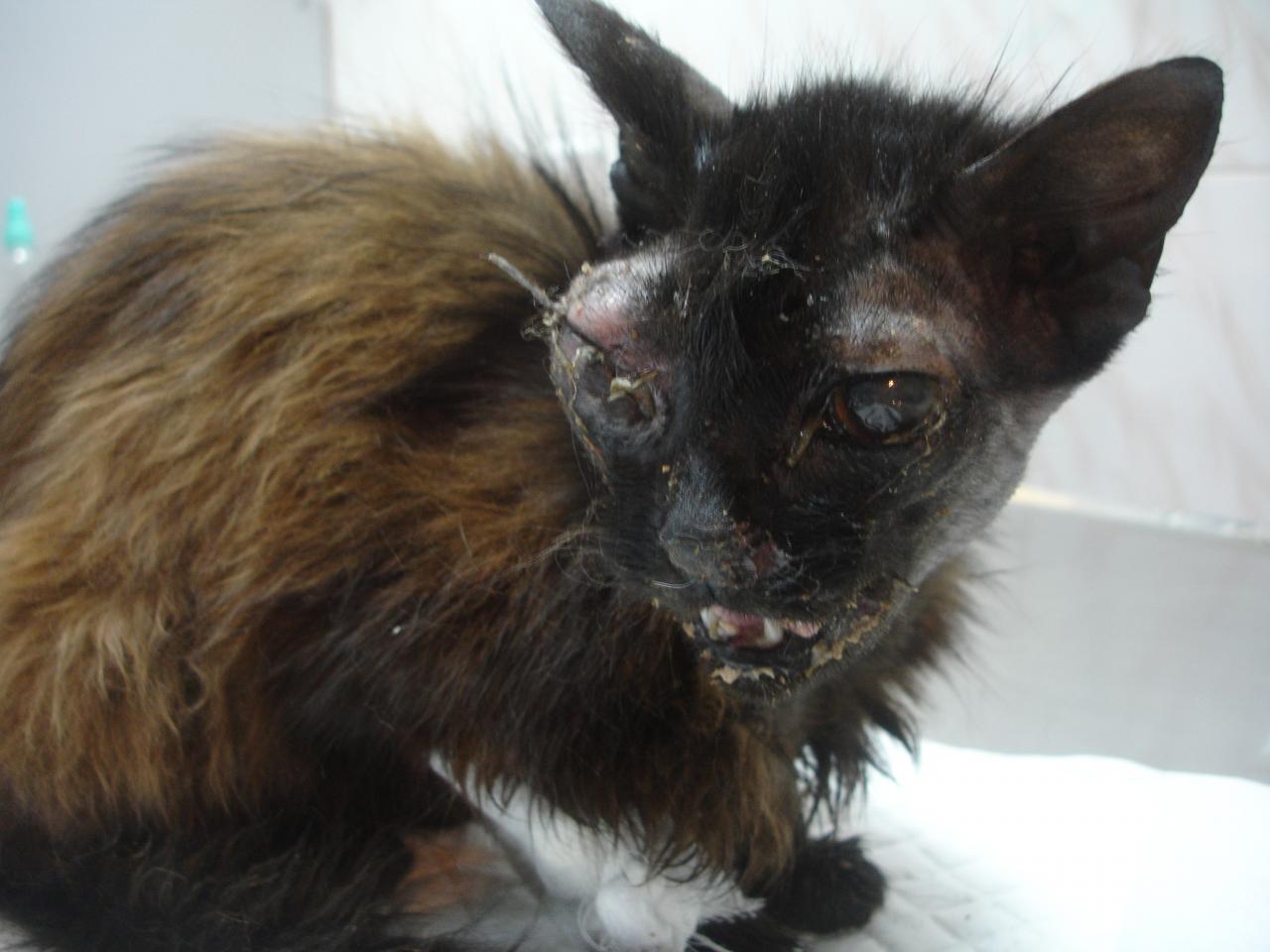Девочки, тяжелая ситуация!!!!19.05 в клинику на Бочарова 1 бабушка принесла дворовую кошку на усыпление. У неё была сломана челюсть, разорван язык,выдавлен правый глаз и поврежден левый. Сказала что нашла её на улице в таком состоянии. Лапы были целые, открытых ран не было, писает кошка сама.....в общем Непейвода С. П. усыплять её отказался, сказал что это здоровая молодая кошка и её можно подлатать, бабушку отправил, НО с условием что она её заберет потом когда будет сама есть. На сегодняшний день кошка уже прооперированна(в тот же день), в челюсти проволока, язык зашит, пр. глаз вправлен на место, сделаны блокады на оба глаза.Будет ли она видеть-неизвестно!! Кошечка ласковая и контактная, сегодня кушала со шприца. Проблема в том что кошку бабушка забрать не может, т к уже 9 штук имеет, я её забрать тоже не могу т к имею ещё больше животных, и вот думаю куда теперь её.....выпустить обратно - дико, искать ей хозяев - можно попробовать. Прошу помощи в пристройстве, потому что честно слабо верю что такую кто то возьмет. Фотки(уже после операции) жутковатые, как спрятать не знаю.